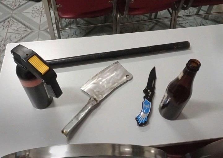 Tổ công tác đã nhanh chóng ngăn chặn, bắt giữ được 2 đối tượng: N.A.T (2007, trú huyện Chư Păh, Gia Lai), Q.H.Đ (2008, trú huyện Chư Prông, Gia Lai) và thu giữ 5 vỏ chai thủy tinh, 1 bình xịt hơi cay, 2 con dao và xe mô-tô BKS 81B2-12xxx do nhóm đối tượng bỏ lại hiện trường.