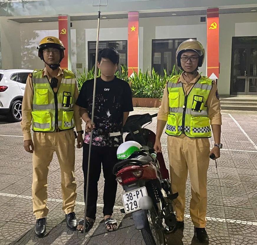 Cụ thể, lức 21 giờ 30 phút ngày 13-8, Tổ công tác thuộc Trạm CSGT Hòa Hiệp – Phòng CSGT Công an TP Đà Nẵng trong quá trình tuần tra đảm bảo TTATGT trên địa bàn tại giao lộ tuyến Hoàng Thị Loan - Nguyễn Sinh Sắc (phường Hòa Khánh) thì phát hiện nhóm thanh thiếu niên gồm 5 đối tượng đi trên 2 xe mô-tô (người ngồi sau có cầm hung khí) nên đã ra hiệu lệnh dừng xe để kiểm tra.