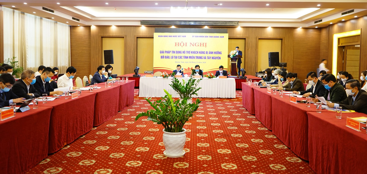 Ngày 4-12, tại TP Tam Kỳ (Quảng Nam), Ngân hàng Nhà nước Việt Nam phối hợp với UBND tỉnh Quảng Nam tổ chức Hội nghị “Giải pháp tín dụng hỗ trợ khách hàng bị ảnh hưởng bởi bão, lũ tại các tỉnh miền Trung và Tây Nguyên”. Ông Nguyễn Hồng Quang – Phó Chủ tịch UBND tỉnh Quảng Nam và đại diện các chi nhánh Ngân hàng Nhà nước, Ngân hàng thương mại tại khu vực miền Trung và Tây Nguyên tham dự hội nghị.