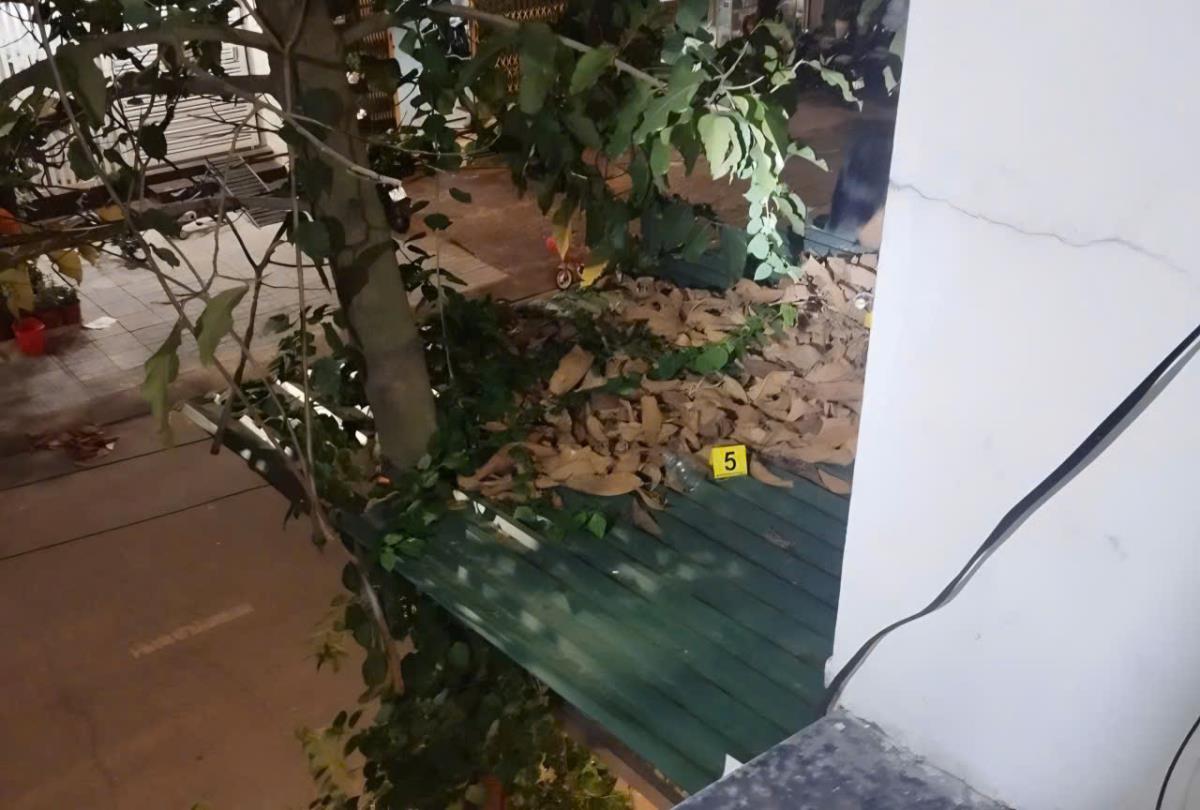 Tiếp tục kiểm tra khu vực mái hiên bên trái ban công – nơi các đối tượng ngồi, lực lượng chức năng phát hiện thêm một túi ni lông chứa chất rắn màu trắng và một đoạn ống hút có chứa chất tương tự.