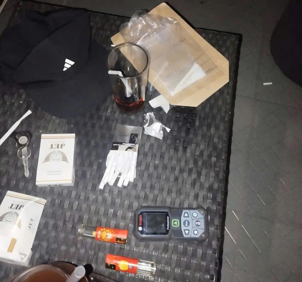 Quá trình kiểm tra, tại mái hiên nhà số 10 Đặng Văn Ngữ (sát bên quán cà phê), tổ công tác phát hiện một chai nhựa và nắp chai được đục hai lỗ, gắn ống thủy tinh và ống hút. Bên trong ống thủy tinh còn bám dính chất rắn màu nâu trắng.