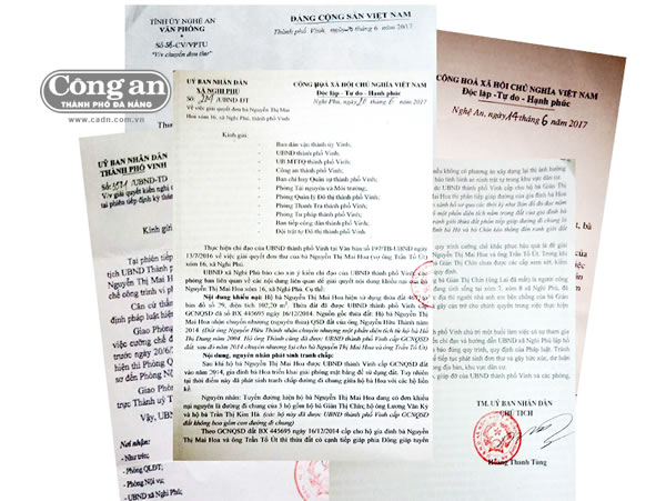 | Các thông báo của UBND TP Vinh gửi UBND xã Nghi Phú yêu cầu giải quyết nhưng đến nay sự việc vẫn chưa ngã ngũ. |