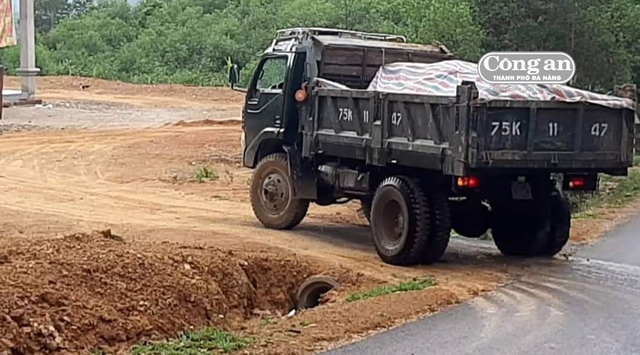 Khi đến hiện trường, chúng tôi phát hiện xe ben BKS 75H-1147 sau khi "ăn" đầy cát ở khu vực suối Máu đã tiến thẳng lên hướng QL49. Sau khi lưu thông khoảng hơn 1km, chiếc xe dừng lại và đổ cát, sỏi xuống một ngôi nhà nằm cạnh bên đường QL49 thuộc xã Hồng Tiến. Tại ngôi nhà này, có một lượng lớn cát, sỏi được mang về tập kết trước đó. Qua tìm hiểu, địa điểm "sa tặc" chở khoáng sản đến là nhà của ông Nguyễn Văn Hoành, là cán bộ Tư pháp- Hộ tịch xã Hồng Tiến. Ông Hoành xác nhận, nơi vừa tập kết số cát sỏi từ xe ben BKS 75H-1147 đúng là nhà của ông. Việc cát, sỏi được chở về nhà ông nhằm mục đích xây dựng bờ kè quanh nhà. Theo ông Hoành, để có cát, sỏi xây dựng ông đã hợp đồng với đoàn xe của một người khác để chở. Còn việc lấy cát, sỏi ở đâu thì phía nhà xe họ tự tìm và sau khi chở về ông sẽ trả tiền cho họ.
