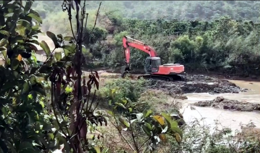 Clip: Hoạt động khai thác vàng trái phép diễn ra ngang nhiên giữa ban ngày.