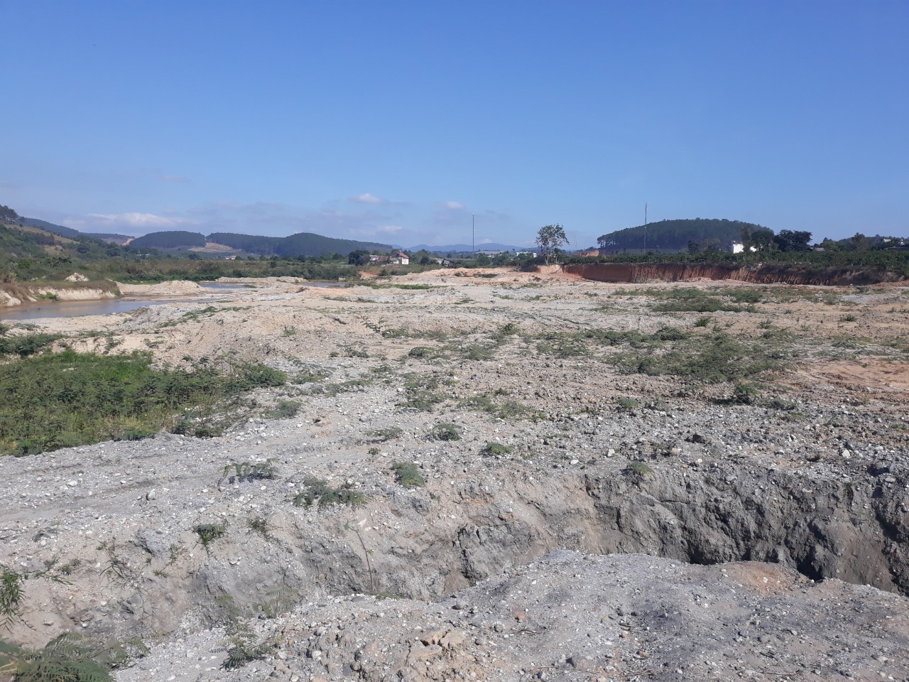 Quang cảnh PV chứng kiến không khỏi xót lòng khi hàng chục ha đất chạy dài khoảng 1 km dọc suối Đạ Quyn qua các thôn Đà Gieng (thôn 16), Đà Giang, Đà Lâm bị đào bới, cắt xẻ tan hoang.