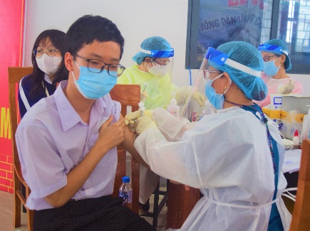 Ngày 2-11, ngành Y tế TP Đà Nẵng đã tiến hành tiêm vaccine phòng COVID-19 cho trẻ em từ 15 đến dưới 18 tuổi trên địa bàn. Theo ghi nhận, công tác tiêm chủng trong ngày đầu diễn ra an toàn, thuận lợi, đảm bảo trật tự cũng như yêu cầu phòng chống dịch.