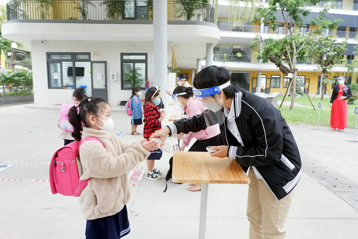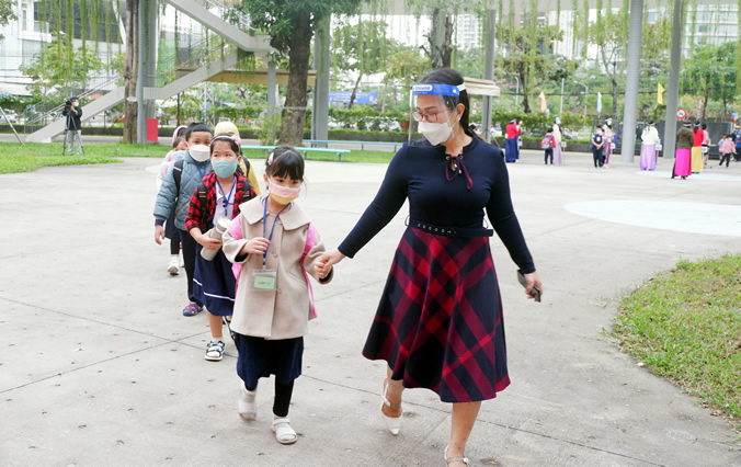 Theo ghi nhận của phóng viên, công tác đảm bảo vệ sinh môi trường trường lớp, chuẩn bị đầy đủ trang thiết bị y tế như máy đo thân nhiệt, nước sát khuẩn cùng các biện pháp phòng, chống dịch đã được tất cả các trường TH, THCS thực hiện đúng quy chuẩn theo hướng dẫn của Bộ Y tế. Đặc biệt, đối với các trường TH, nhà trường đã tăng cường đội ngũ giáo viên các khối lớp còn lại đến trường để cùng GVCN lớp 1 đón và dắt các cháu lên tận lớp học.