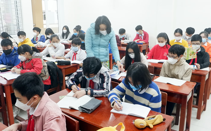 Khác với tâm trạng bỡ ngỡ của HS lớp 1 bậc TH, tâm trạng của HS hai khối lớp 8, 9 THCS khi được trở lại trường học tập háo hức, phấn khởi. Em Phạm Thanh Hoàng Long- HS lớp 9/4 trường THCS Lê Hồng Phong- vui vẻ thổ lộ: “Sáng nay, em dậy thật sớm ăn sáng, chuẩn bị đầy đủ sách vở để mẹ chở xuống trường. Ở nhà thật chán vì chỉ quanh quẩn cấm đầu vào học online, làm bài tập, không được đi đâu. Giờ được đến trường học tập, được gặp bạn bè, thầy cô, được giao tiếp nên em rất vui sướng. Hơn nữa, đến trường có động lực học tập và tiếp thu kiến thức tốt hơn học online ở nhà”.