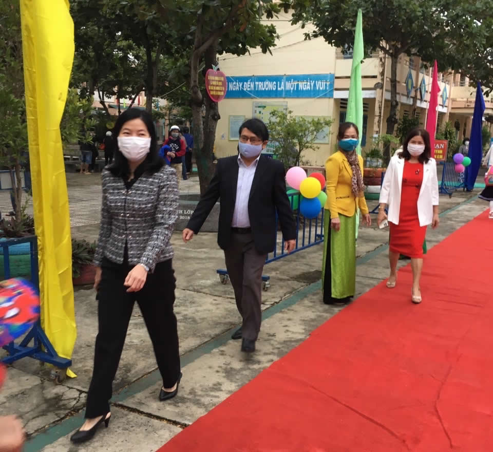 Giám đốc Sở GD-ĐT TP Lê Thị Bích Thuận và Văn phòng UBND TP đến kiểm tra công tác đón HS lớp 1 tại trường TH Ngô Gia Tự (Sơn Trà)