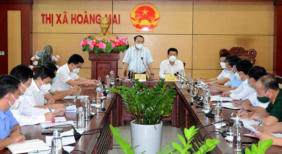 Lãnh đạo Sở Y tế chủ trì cuộc họp khẩn tại Thị xã Hoàng Mai. |