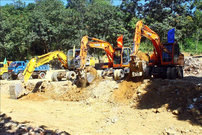 Máy móc thi công xây dựng công trình trường THPT Kỳ Sơn.