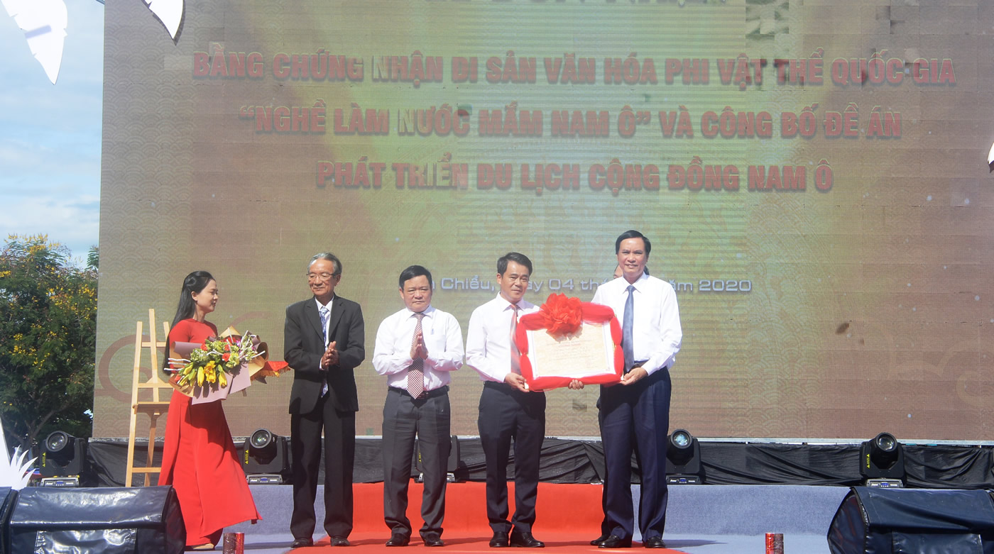 Phát biểu tại buổi lễ, Phó Chủ tịch UBND TP Trần Văn Miên khẳng định: Nghề làm nước mắm Nam Ô có từ lâu đời và gắn liền với tiến trình mở cõi vê phương Nam của dân tộc. Dù trải qua bao thăng trầm, biến thiên thay đổi của thời gian, đến nay nghề làm nước mắm Nam Ô vẫn tồn tại và phát triển. Theo năm tháng, những kinh nghiệm dân gian, bí quyết, kỹ thuật làm nước mắm vẫn được bảo lưu, trao truyền qua nhiều thế hệ. Đây không chỉ là một sản phẩm ẩm thực không thể thiếu trong bữa cơm hàng ngày của người dân Đà Nẵng mà còn là biểu tượng văn hóa, có tính đại diện, thể hiện bản sắc văn hóa của cộng đồng địa phương. “Việc Bộ Văn hóa, Thể thao và Du lịch đưa di sản văn hóa phi vật thể “Nghề làm nuớc mắm Nam Ô” vào Danh mục di sản văn hóa phi vật thể quốc gia đã khẳng định giá trị đặc sắc của di sản. Đồng thời, thể hiện sự ghi nhận công lao và tri ân sâu sắc đối với các nghệ nhân, bà con làng nghề đã cống hiến tâm sức sáng tạo, giữ gìn, trao truyền di sản văn hóa này. Tôi đề nghị chính quyền địa phương và bà con làng nghề tiếp tục phát huy giá trị di sản, trong đó đặc biệt chú ý nhiệm vụ “Bảo tồn và phát huy giá trị di sản “Nghề làm nuớc mắm Nam Ô” gắn với phát triển du lịch của TP Đà Nẵng”; để làng nghề trở thành một sản phẩm độc đáo nhằm giới thiệu, quảng bá nét văn hóa biển đặc sắc, mang lại những lợi ích trong phát triển kinh tế xã hội cho địa phương và cộng đồng, đặc biệt là kinh tế du lịch” – Phó Chủ tịch Trần Văn Miên nói.