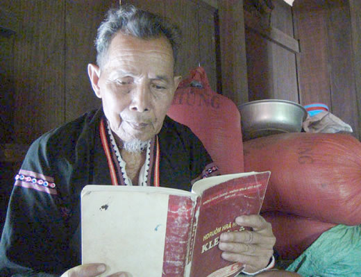 (Cadn.com.vn) - Nghệ nhân Ưu tú Nay Y Kuân (Ma Vi) năm nay đã 84 tuổi nhưng vẫn còn rất minh mẫn. Hiện ông là thầy dạy tiếng Ê Đê duy nhất cho người dân trong các buôn làng ở xã Ea Bia, H. Sông Hinh (Phú Yên) Nay Y Kuân mất cha từ thuở nhỏ. Nhà nghèo, mẹ Y Kuân muốn cậu cố gắng học hành để lập thân. Cậu học sinh Nay Y Kuân đi theo Việt Minh, từ năm 1947-1954, Y Kuân đã 2 lần bị thực dân Pháp bắt, đưa về Đắc Lắc và buộc theo đuổi chuyên ngành chữ viết Ê Đê tại một ngôi trường ở TX Buôn Mê Thuột (cũ).