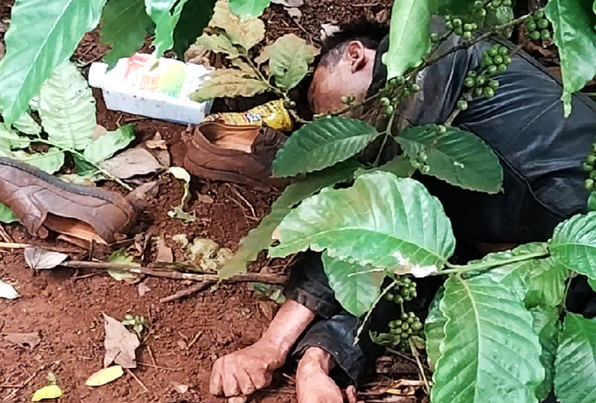 Qua trình xác minh, truy vết đối tượng nghi liên quan đến cái chết của một phụ nữ tại nhà nghỉ, cơ quan Công an phát hiện người đàn ông nghi vấn nằm thoi thóp tại rẫy cà-phê. Thời điểm phát hiện, bên cạnh nghi phạm có chai thuốc trừ sâu đã uống dở. Dù lực lượng chức năng lập tức đưa người đàn ông này đến bệnh viện cấp cứu; tuy nhiên ông ta đã không qua khỏi.