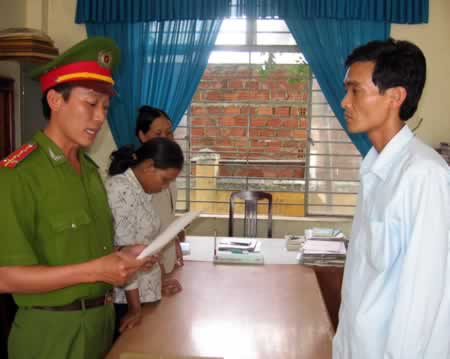 Công bố lệnh bắt tạm giam Hưng trước sự chứng kiến của người thân. |
