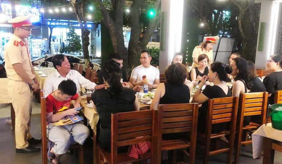Lực lượng CSGT Đà Nẵng đến tận bàn nhậu để tuyên truyền cho người dân về Nghị định 100. |