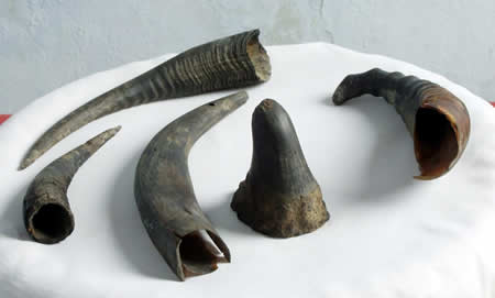 5 chiếc sừng mà Tiền cho là của ông tổ truyền lại. |