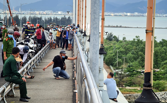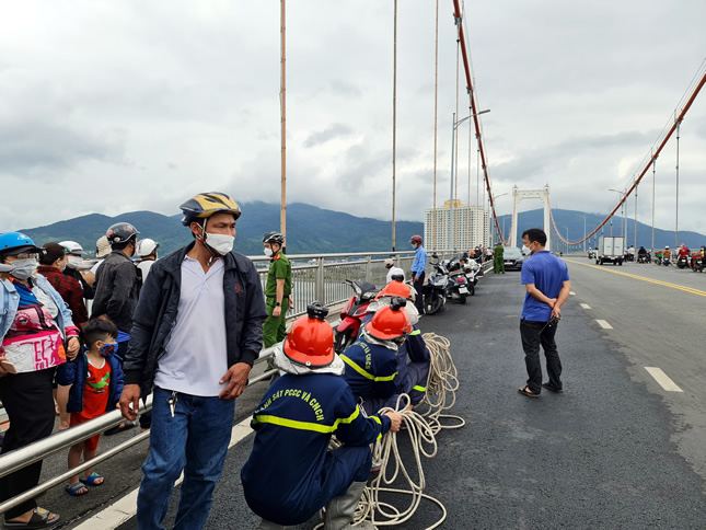 Vụ việc khiến nhiều người dân hiếu kỳ tập trung trên cầu, Công an TP cho lực lượng vãn hồi trật tự. Hiện các lực lượng cứu nạn cứu hộ vẫn túc trực, sẵn sàng các phương án cứu người.