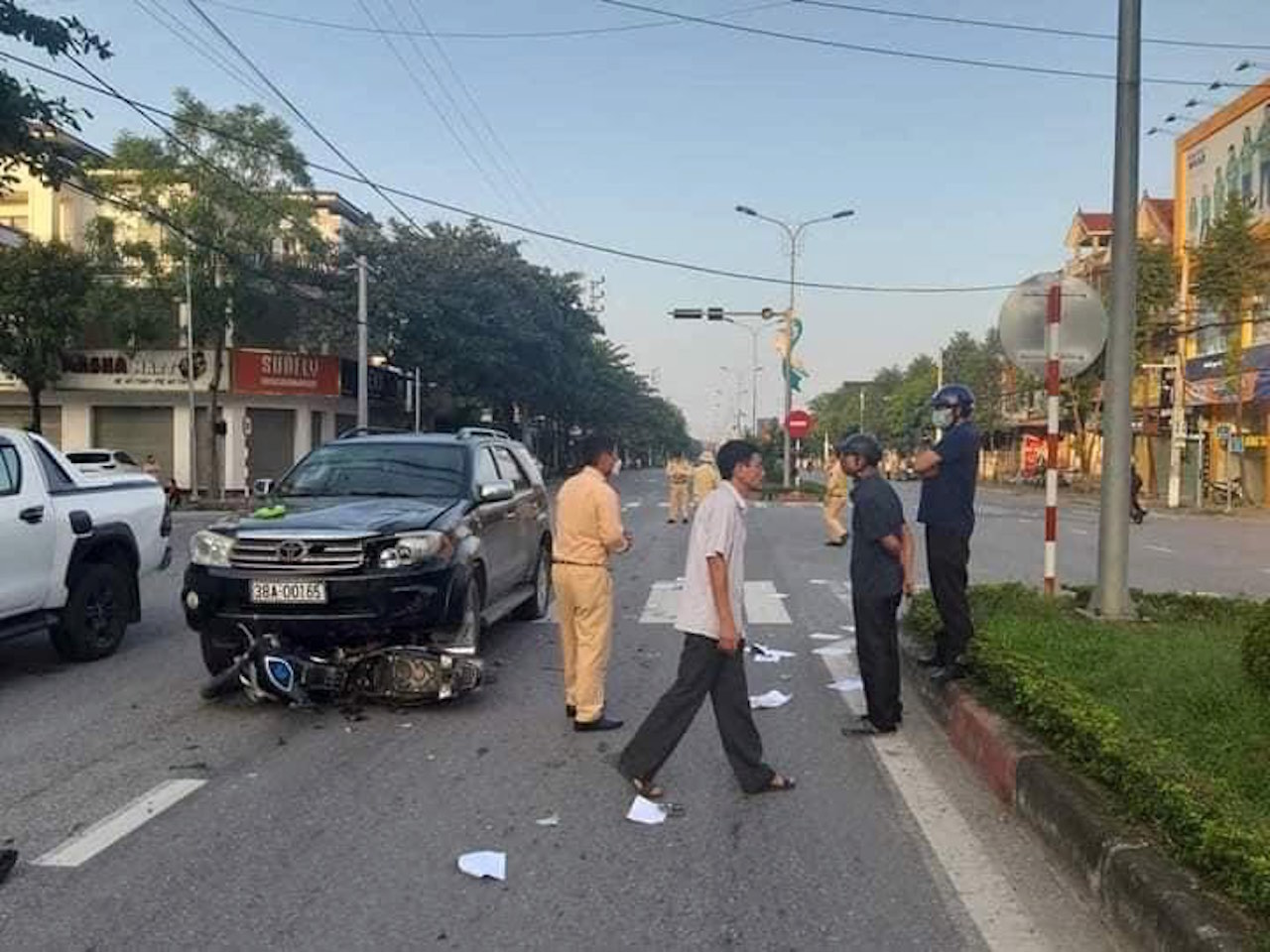Cụm đèn tín hiệu giao thông tại ngã tư (đường Trần Phú- đường Nguyễn Đổng Chi- đường 3/2) bị hỏng dẫn tới xảy ra TNGT.