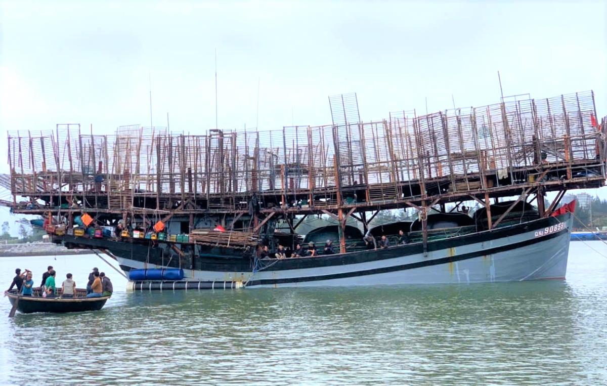 Rạng sáng 27-2, tàu câu mực QNa 90859 TS do ngư dân Huỳnh Văn Trí (46 tuổi, trú xã Tam Giang, huyện Núi Thành, Quảng Nam) làm chủ, cập bến Tam Quang.
