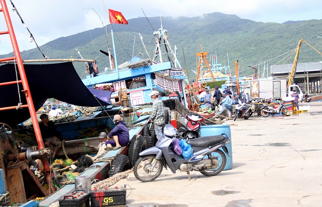 Giữa trưa, mặt trời đứng bóng, Cảng cá Thọ Quang (quận Sơn Trà, Đà Nẵng) lại bắt đầu tấp nập. Tàu thuyền đầy ắp tôm cá nối đuôi nhau cập cảng với chuyến đi biển đầu tiên sau thời gian dài neo bờ. Các tàu đậu san sát, ngư dân luôn tay chuyển từng sọt cá, mực, ghẹ… lên bờ để bán cho thương lái. Kề đó, nhiều chủ tàu cũng đang đốc thúc thuyền viên tu bổ lại thuyền, sắp xếp lưới, ngư cụ, dầu… để chuẩn bị vươn khơi. Thương lái tấp nập kéo xe ba gác ra bến cảng, tất bật lựa cá, cân cá, tính tiền rồi tỏa đi các chợ. Đã lâu rồi, cảng cá lớn nhất miền Trung mới nhộn nhịp, tất bật đến vậy.