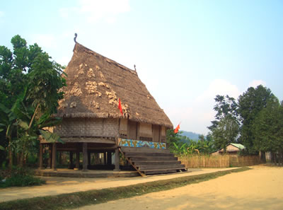 Bản làng Cơ Tu sạch đẹp (thôn B’Hôồng, xã Sông Kôn). |