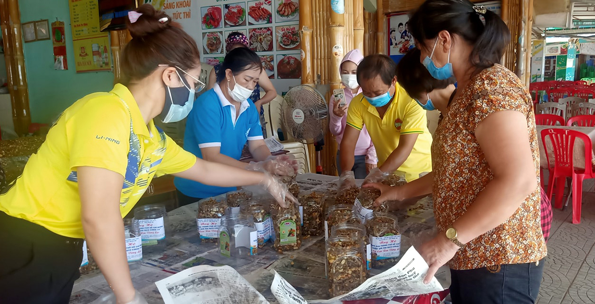 Cũng xuất phát từ tình cảm với bà con TP Hồ Chí Minh và hưởng ứng lời kêu gọi, bà con nhân dân xã Nam Xuân, H. Nam Đàn đã ủng hộ, quyên góp trứng gà, bí xanh, bí đỏ, lạc nhân, chanh... Chỉ sau 1 ngày, người dân xã Nam Xuân đã quyên góp được 1.091 quả trứng gà, 2.284kg bí xanh, 170kg bí đỏ, 422kg lạc nhân, 80kg chanh. Khác với người dân Cửa Lò, Nam Đàn, ngoài ủng hộ các loại rau, củ quả, Đoàn thanh niên xã Thuận Sơn, H. Đô Lương đã chung tay làm món nhút (sản phẩm làm từ quả mít non). Hàng trăm hộp nhút cũng đã được đóng gói cẩn thận để chờ chuyển vào cho bà con TP Hồ Chí Minh.