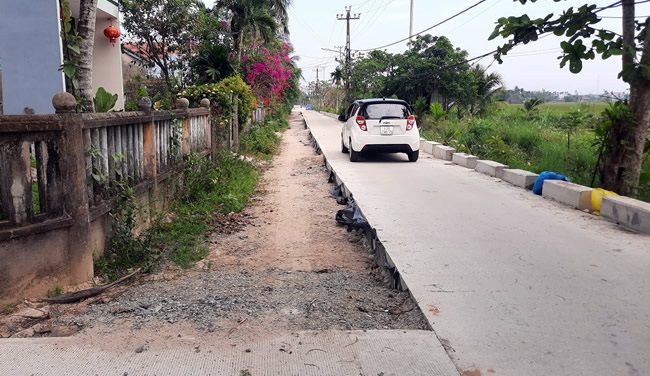 - Hiện vẫn còn 4 đoạn làn đường chưa được thi công. Đơn vị thi công đổ bê-tông 1 làn đường, làn bên kia chưa làm mặt bằng đất đá nham nhở khiến việc lưu thông gặp khó khăn, nhất là lúc tránh ô-tô và phương tiện tải trọng lớn.
