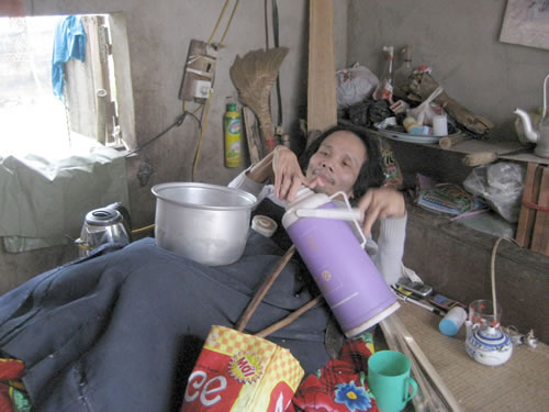 | Mặc dù nằm một chỗ nhưng anh có thể tự nấu cơm. |