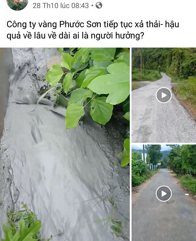 Một số hình ảnh người dân đưa lên mạng cho rằng Cty vàng Phước Sơn xả thải trực tiếp ra môi trường mà chưa qua xử lý. |