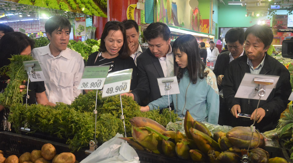Lãnh đạo H. Sơn Hà trực tiếp làm công tác xúc tiến, kết nối và kiểm tra sản lượng tiêu thụ nông sản của bà con tại siêu thị BigC Đà Nẵng. |