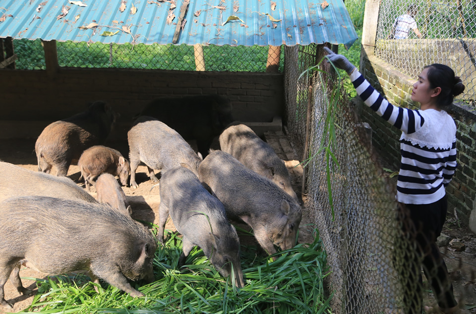Trang trại nuôi heo ky trong chương trình sinh kế cộng đồng của bà con người Hre tại H. Sơn Hà, Quảng Ngãi. |