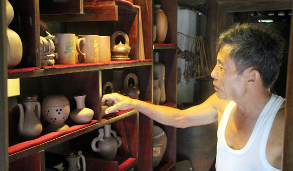 Những vật dụng bằng gốm có niên đại hàng trăm năm được ông Diễn cất giữ cẩn thận. |