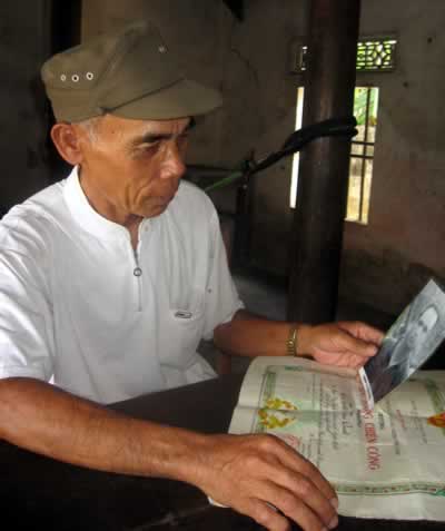 Ông Quát giới thiệu Bằng khen và tấm ảnh của Diuyn. |