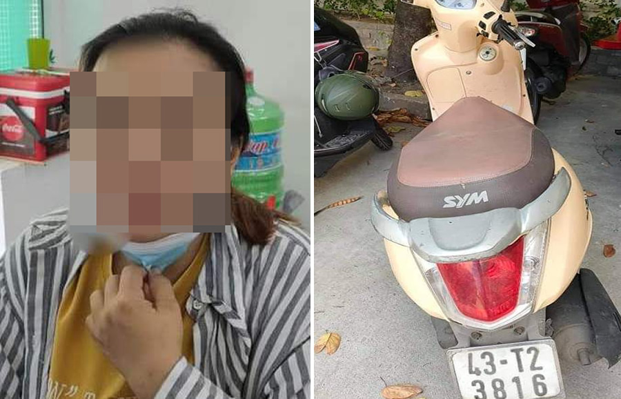 Đặng Thị Kim Nga và xe máy BKS 43T2-3816. |