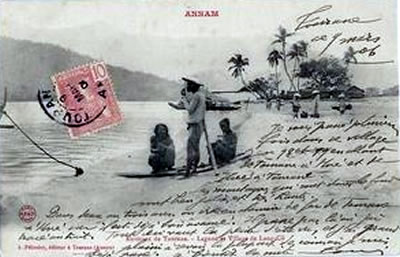 Làng ven biển Đà Nẵng xưa được in trên bưu thiếp. |