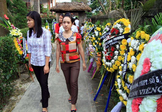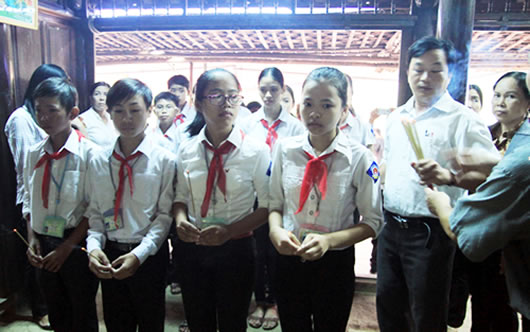 Các cháu học sinh viếng tại Nhà tưởng niệm Đại tướng Võ Nguyên Giáp (thôn An Xá, xã Lộc Thủy, H. Lệ Thủy, Quảng Bình). |