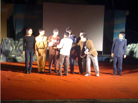 (Cadn.com.vn) - Tối 14-6, tại Nhà biểu diễn đa năng TP Đà Nẵng, Đoàn kịch Quảng Ninh đã công diễn vở kịch nói mang tên “Người tình nguyện”- đây là buổi công diễn đầu tiên trong tour biểu diễn xuyên Việt của Đoàn kịch nói Quảng Ninh- đơn vị nghệ thuật được Ủy ban An toàn Quốc gia, Bộ CA gửi gắm những thông điệp về ATGT. Đêm diễn tại Đà Nẵng, cũng như hơn 40 đêm diễn khác ở các tỉnh phía Bắc, đã khiến bao khán giả phải rơi nước mắt bởi “Người tình nguyện”, không chỉ đơn giản là số phận của riêng ai mà đó chính là thông điệp của những trái tim biết yêu, biết thổn thức với những số phận của người khác. Sau buổi biểu diễn thành công, P.V Báo Công an TP Đà Nẵng đã có cuộc trò chuyện với NSƯT Bằng Thái -Trưởng đoàn nghệ thuật Quảng Ninh.