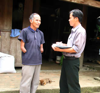 Theo chân anh Nguyễn Văn Thanh, Trưởng CAX Tam Lãnh, chúng tôi về Trà Văn vào một ngày cuối tháng 6-2009. Làng vắng hoe, chỉ có người già ở nhà phơi lúa, phơi bắp, lũ trẻ con đang kỳ nghỉ hè hò hét tắm dưới vòi nước nguồn tự chảy giữa thôn. Nghe tin có khách, già làng Nguyễn Văn Phương đang làm rẫy vội trở về nhà. Đón chúng tôi, già phân trần: “Đang mùa phát cỏ rừng trồng, làm cỏ lúa nước, nhiều việc lắm...”. Thấy tôi ngạc nhiên khi thấy già Phương cụt cả hai tay, anh Thanh giải thích: già Phương là thương binh hạng 2/4 từ thời đánh Mỹ, nhưng làm việc còn khỏe và hăng hái không kém gì lũ thanh niên.