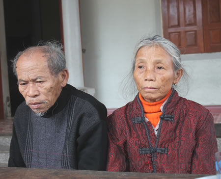 Vợ chồng ông Thựu thẫn thờ trước hành vi của ông Ba. |