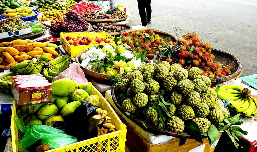 Nhiều người khi đến Nha Trang cứ nghĩ đến là ở nơi này chỉ có bãi biển dài bên cạnh thành phố mê hoặc lòng người, và những món ăn hải sản tạo ra một không gian ẩm thực riêng biệt. Nhưng vào mùa hạ, khi các con đường rực hồng hoa phượng, Nha Trang lại vào mùa trái chín, để người chợt gặp không thể không dừng chân để mua những sản vật rất riêng của nơi này. Với du khách đến từ các nước Châu Âu thì lựa chọn của họ là trái cây. Cho nên nếu đi trên đường bạn sẽ bắt gặp hình ảnh những gian hàng bán trái cây bày biện rất bắt mắt, khách chọn mua vừa đi vừa ăn ngon lành. Đa phần trái cây chẳng phải nhập từ tỉnh nào, bởi Khánh Hòa cũng là xứ sở của các loại cây trái. Tỉ dụ như ở chợ Vĩnh Hải có một khu đất ven lộ, cứ chiều chiều xuất hiện những người buôn bán từ trên Diên Khánh hoặc ở khu vực Vĩnh Phương. Họ bày bán mía, xoài, mãng cầu vườn... Ngay trên đường Lê Hồng Phong có cả một vựa trái cây, chủ yếu là dưa hấu, bưởi... để mặc cho khách chọn lựa.