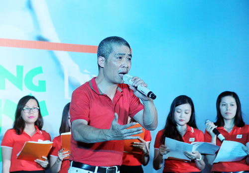 | Trương Quý Hải "cháy" hết mình khi biểu diễn trường ca "Người Việt Nam" trước đông đảo khán giả miền Trung hôm 20-6. |