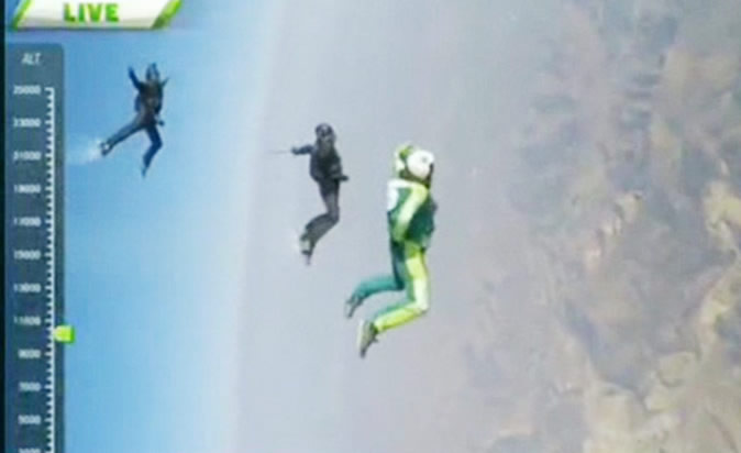 (Cadn.com.vn) - Luke Aikins, 42 tuổi, một trong những vận động viên nhảy dù ưu tú nhất thế giới, từng thực hiện khoảng 18.000 cú nhảy trở thành người đầu tiên nhảy từ độ cao 7.600m mà không cần dù sau màn biểu diễn ở Thung lũng Simi, California (Mỹ) hôm 30-7. Aikins rơi ở tốc độ 54m/s vào lưới có kích thước bằng một sân bóng đá.
