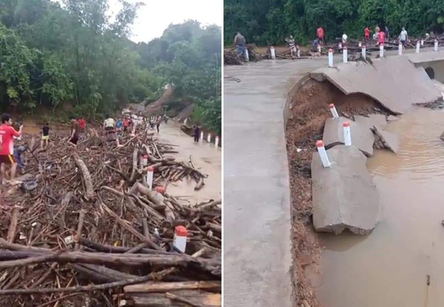 Mưa lũ do ảnh hưởng cơn bão số 5 số 6 vừa qua tàn phá đường giao thông liên xã Bahalee.
