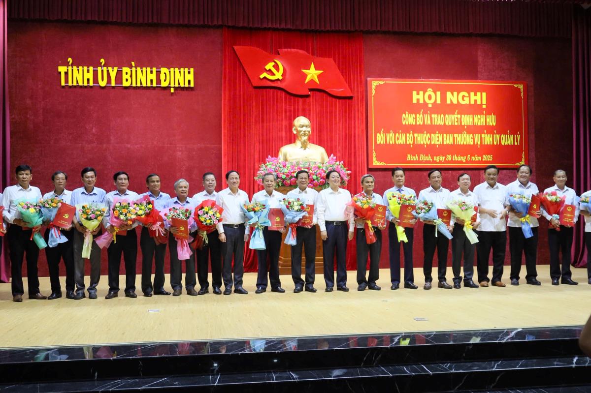 Chiều 30-6, Tỉnh ủy Bình Định tổ chức hội nghị công bố và trao quyết định nghỉ hưu đối với cán bộ thuộc diện Ban Thường vụ Tỉnh ủy quản lý.