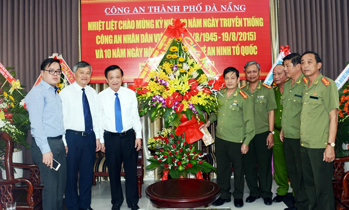 (Cadn.com.vn) - ĐÀ NẴNG - Chiều 18-8, đoàn lãnh đạo Thành ủy, HĐND, UBND, UBMTTQ Việt Nam TP Đà Nẵng do đồng chí Trần Thọ, Bí thư Thành ủy, Chủ tịch HĐND TP làm trưởng đoàn đã đến thăm, chúc mừng CATP. Thay mặt lãnh đạo TP, đồng chí Trần Thọ gửi lời chúc sức khỏe, hạnh phúc và thắng lợi đến Ban giám đốc và lãnh đạo, CBCS các phòng ban nghiệp vụ, CA các địa phương trực thuộc CATP nhân dịp kỷ niệm ngày truyền thống, đồng thời nhấn mạnh: Trong thành tựu chung mà TP đạt được thời gian qua và hôm nay, có sự góp sức rất lớn của lực lượng CATP.