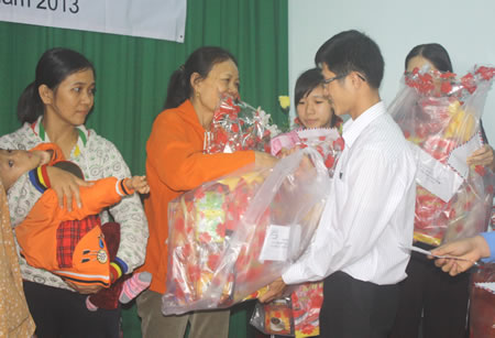 (Cadn.com.vn) - ĐÀ NẴNG- Hội Bảo trợ phụ nữ và trẻ em nghèo bất hạnh TP ngày 29-1 phối hợp với quỹ Thiện tâm và Tập đoàn Vin Group tặng 180 suất quà tết cho phụ nữ và trẻ em nghèo bất hạnh trên địa bàn Đà Nẵng, mỗi suất trị giá 500.000 đồng.