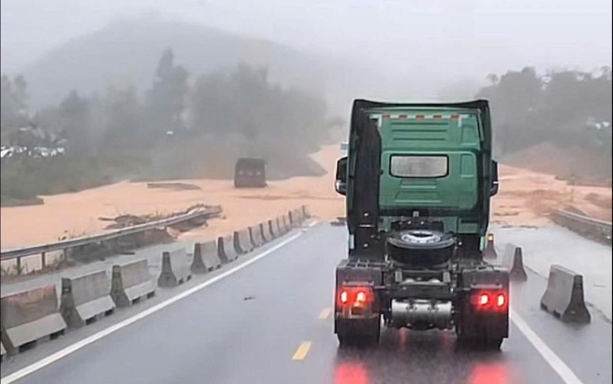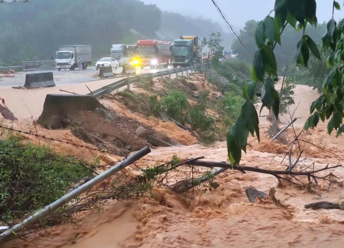 Mưa lớn cũng gây ra tình trạng sạt lở trên tuyến cao tốc La Sơn - Tuý Loan đoạn qua TP Huế khiến một chiếc xe gặp nạn, rất may không có thương vong về người.