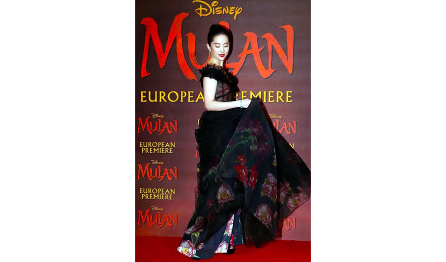 Lưu Diệc Phi xuất hiện tại buổi chiếu ra mắt bộ phim Mulan tại London, Anh, ngày 12-3, nhưng bộ phim đã bị hoãn chiếu sau đó vì dịch Covid-19. |