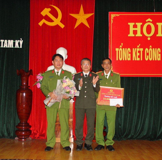 Quảng Nam- Đại tá Nguyễn Đức Dũng- Giám đốc CA tỉnh Quảng Nam ngày 8-1 đã đến biểu dương, trao thưởng 10 triệu đồng, Bí thư kiêm Chủ tịch UBND TP Tam Kỳ Nguyễn Hồng Quang cũng tặng Giấy khen kèm 10 triệu đồng cho CATP Tam Kỳ về thành tích triệt phá nhanh chuyên án "Cướp tài sản".